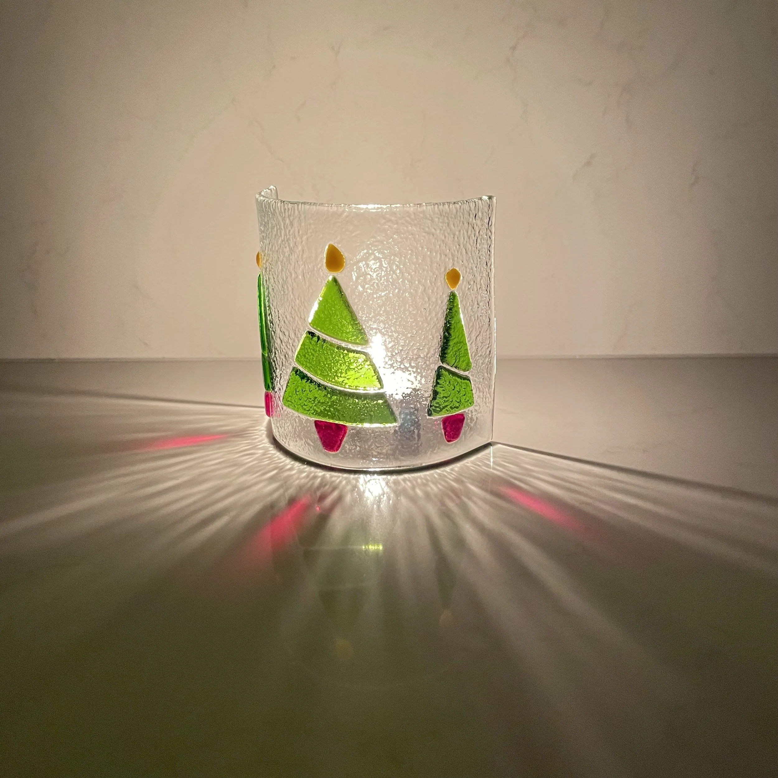 Bright, colourful and striking contemporary fused glass. Designed and made by hand to delight and make you smile. Categories: All Best Sellers Small gifts Candle curves Larger pieces Brights Platters Geometric Small dish Heart Poppies Small bowls Christmas Organic Coral Brights All / Organic | Large Coral bowl - dark blue coral on textured clear base £145.00 Small Candle £6.00 Christmas tree small candle curve: green with snow £34.00 Sold Out Glass Gift Card from £25.00 Christmas tree large curve: green with snow £39.00 Christmas tree large candle curve - dark green £39.00 Christmas Candle £6.00 Small robin £9.00 By The River - large fused glass bowl - 35cm diameter £275.00 Sold Out Coral - ivory small round shallow bowl, 12cm £36.00 Coral - ivory round large shallow bowl, 25cm round £65.00 Sold Out Small red 'bold' poppy £34.00 Small orange coral bowl £37.00 Autumn platter in greens and golds £95.00 Rainbow candle curve £34.00 Christmas tree - plain green £8.00 Christmas tree - green with snow £8.00